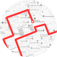 Мені сподобалося працювати з червоною стрічкою – розтягувати, звивати, перетинати, робити з рівного ламане. І знаходити у зламі гармонію. Вулиця Миру чимось схожа на таку переплутану стрічку, тільки без гармонії.